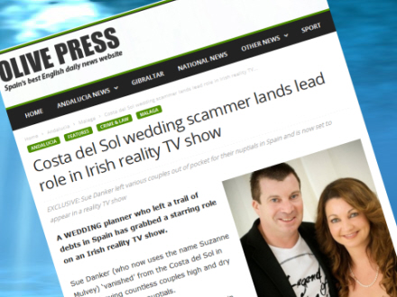 The Olive Press skrev først om Danker og hendes mand og forretningspartner, Howard Danker, i oktober 2012, efter mange herboende udlændinge havde mistet penge til bryllups-damen. Det betød i sidste ende, at de på livet største dag stod uden nogen som helst fest eller noget.