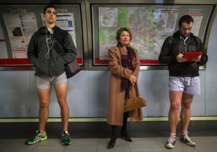 Pludselig var op mod hundrede passagerer i Madrids metro uden bukser. Det skabte en del undrende blikkende fra de fleste. For de bukseløse virkede det fog som en helt almindelig dag.