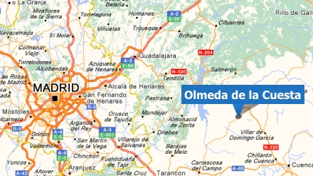 Olmeda ligger i Don Quijotes hjemstavn, Castilla La Mancha, 160 km øst for Madrid. Kommunen er på godt 32 kvadratkilometer, og har altså en befolkningstæthed på 1,82 person per kvadratkilometer ifølge kommunens egen hjememside.