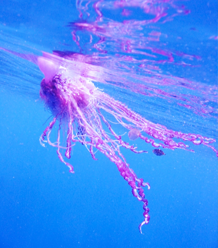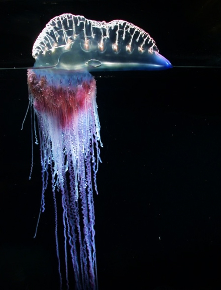 Den portugisiske Carabel – også kaldet ”orlogsmand” kommer frem med hjælp fra vinden i kraft af et “sejl”, som det rejser over bølgerne – en form oppustelig kvælstofholdig vinge i en klar blåviolet farve. Nede i vandet ligger goplens op til ti meter lange og giftige tentakler, der automatisk lammer ethvert byttedyr, som uheldigvis svømmer forbi.