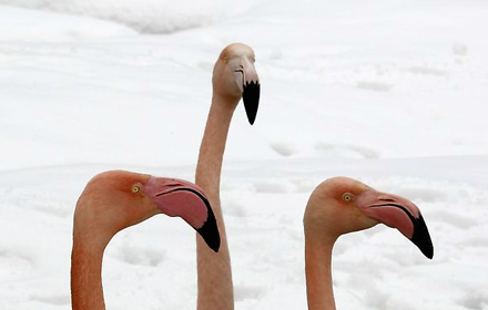 Nogle flamingoer i en zoologiske have i Ankara, Tyrkiet, der er også blevet påvirket af den sibiriske kulde; de ser lidt chokerede ud