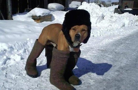 Denne hund ser ikke ud til at være så glad for sin påklædning - men den fryser i det mindste ikke!