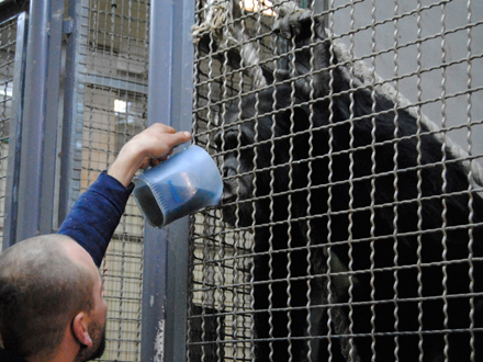 En dyrepasser i Bioparc Valencia giver varm suppe til chimpanserne, for at de skal kunne få varmen