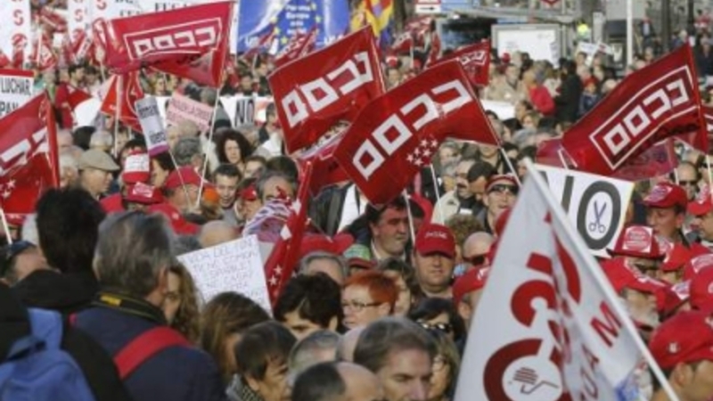 Tusindvis af personer bakkede i går op om demonstrationer arrangeret af de tre store fagforbund, CCOO, UGT og USO, mod regeringens nedskæringspolitik og krav fra EU om lavere løn, flere nedskæringer og højere afgifter.