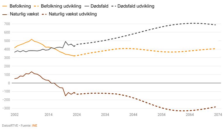 Antallet af dødsfald vil være højere end antallet af fødsler i vores land i de næste 15 år. INE forudsiger, at den naturlige vækst kan nå sin laveste værdi i 2061.
