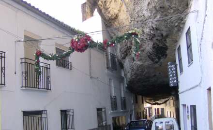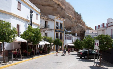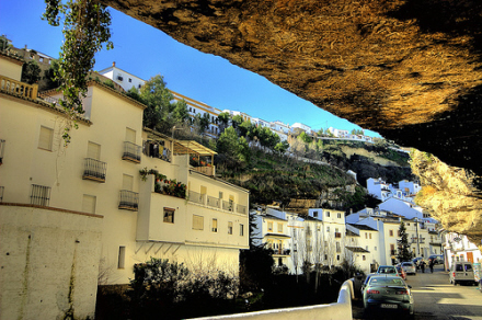 Setenil de las Bodegas er en landsby med omkring 3.000 indbyggere, placeret lige over Río Trejo, og den nederste del af landsbyen er blevet bygget direkte under kløftens klippefremspring, som er skabt af floden. Man udnytter det naturlige hulrum og udhæng, som er blevet dannet i klippevæggen i tidens løb.