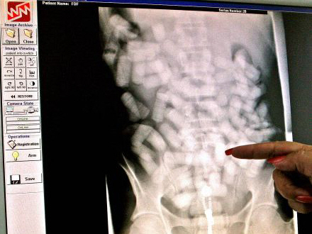 Det er tydeligt at se poserne med narko på scanningsbilleder