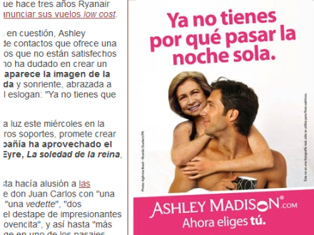 Annoncen blev – naturligvis uden dronningens samtykke – lagt på nettet i februar, kort efter udgivelse af den polemiske bog ”En dronnings ensomhed” om dronningens ulykkelige privatliv. Forfatteren, Pilar Eyre, hævder, at kongen har haft mindst 1.500 affærer i løbet af sit ægteskab. Ashley Madison foreslår i sin annonce, at det nu er ”dronningens tur til at nyde livet og vælge, hvem hun vil tilbringe natten med”.