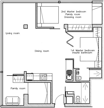Family rooms er placeret i 'hjørnerne' og begge har alternativ anvendelse ved færre brugende personer.