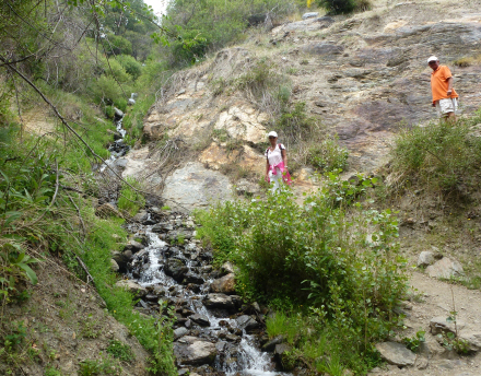 Snart begynder stien at gå nedad, og vi får La Cebadilla i sigte. Det første, man ser, er den forladte kirke og de få bygninger, der husede de omkring 50 ansatte på elværket, da det blev bygget i 1950'erne. Elværket ligger der, hvor de to floder Naute og Toril løber sammen til floden Poqueira, og derfor har den meget stor kraft præcis her.