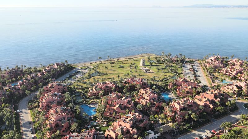 Vi er i urbanisationen Torre Bermeja nær Estepona, hvor boligerne koster omkring 1,5 million euro.
