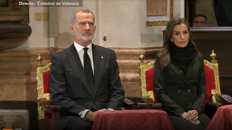 Dronningen stoppede op for at omfavne flere kvinder, som i nogle tilfælde bar et billede af deres afdøde og talte med dem i lang tid. Felipe, som fik tilråbene “længe leve kongen”, fik flere samtaler i en langsom og inderlig rundtur i katedralen for at udtrykke sin nærhed til ofrene.