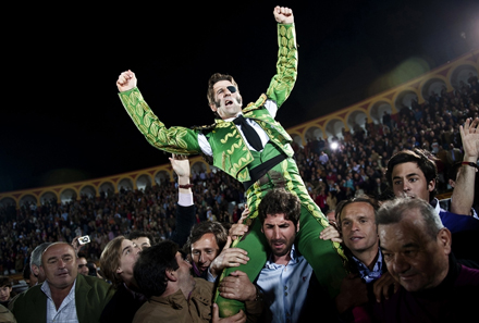 Med en klap for øjet og lammet i halvdelen af i ansigtet dræbte Juan Jose Padilla under stor jubel fra publikum to tyre - hver på et halvt ton.