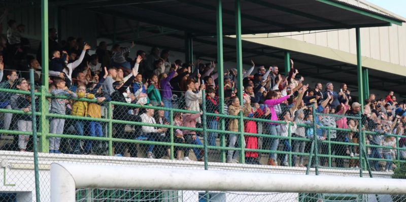 Selvfølgelig SKULLE det trække lidt ud med helikopterens ankomst, men hele stadion kogte frem til, at larmen fra Guardia Civils helikopter overdøvede alle lyde.