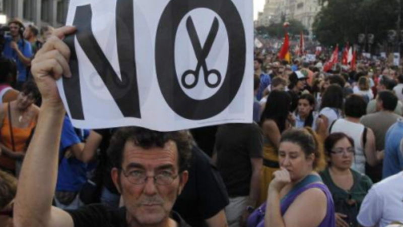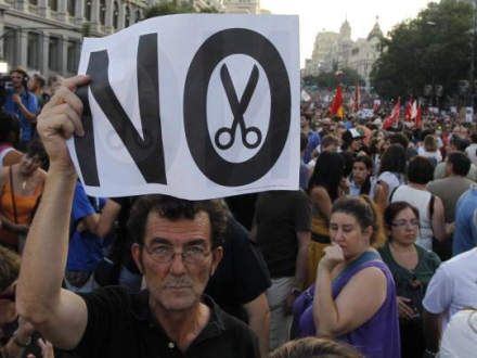 Nedskæringerne og afgiftsforhøjelserne blev vedtaget med snævrest mulige flertal, millioner demonstrerede imod og selvom tyskerne vedtog redningspakken til de spanske banker, så tog renten ny himmelflugt.