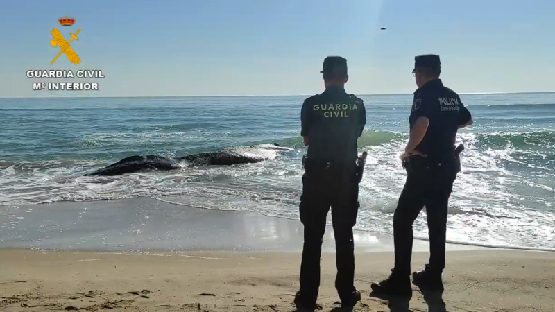 Teknikere fra Oceanogràfic Foundation har tilset det store dyr sammen med betjente fra Guardia Civil og lokalpolitiet samt teknikere fra Tabernes Kommune.