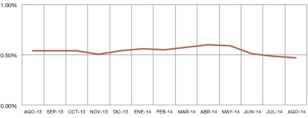 Den stabile udvikling fra august 2013 til august 2014