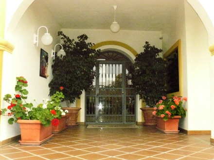 Residencia Villa-Alhamar er en velholdt to-etagers ejendom med små lejligheder. Den hvid-gule bygning har et flot haveanlæg med gangstier, en stor overdækket pergola-terrasse og skyggefulde palmer.