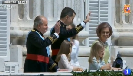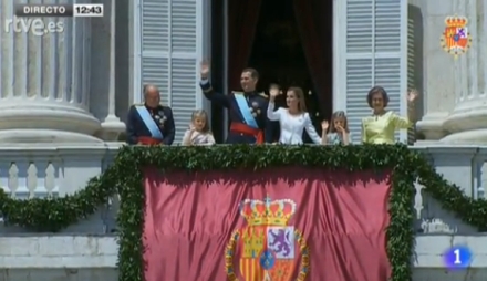 Alles øjne er rettet mod balkonen, hvor Spaniens nye konge træder frem