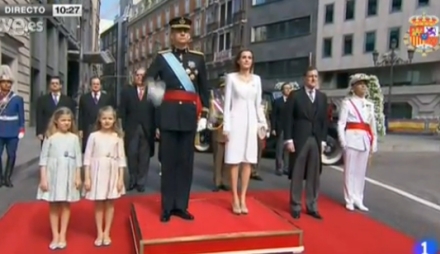 Premierminister Mariano Rajoy ledsager Dronning Letizia, kronprinsesse Leonor og prinsesse Sofia