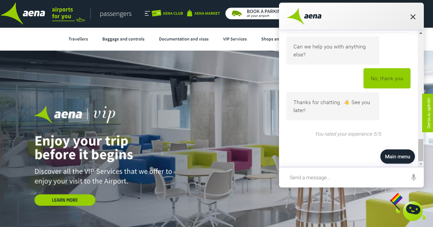 Robotten giver information i realtid om flyvninger og tjenester i lufthavnen og kan også omdirigere brugerne til AenaMaps for at guide dem gennem lufthavnen.