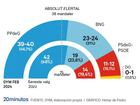 Siden 1989 har Partido Popular haft absolut flertal ved alle valg i Galicien, med undtagelse af 2005, hvor de kun manglede ét mandat for at beholde det. På søndag er spørgsmålet, om de vil opnå et tilstrækkeligt flertal til fortsat at kunne regere.