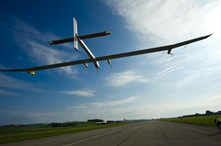 På flyet er placeret 12.000 solceller, som producerer energi til de fire motorer. Overskydende energi gemmes på et batteri, som gør det muligt også at flyve om natten.