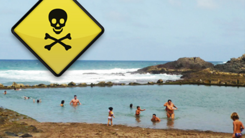 Myndighederne har besluttet at lukke stranden og et svømmebassin efter udbruddet.