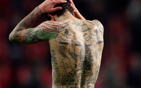 - Man kan kun respektere de tradionelle japanske tatoveringer på denne mands underarm. Koi-fisken er et symbol på lykke og held - det havde han formentlig i rigelige mængder, da han vandt det engelske mesterskab to gange på tre år med Manchester City.
