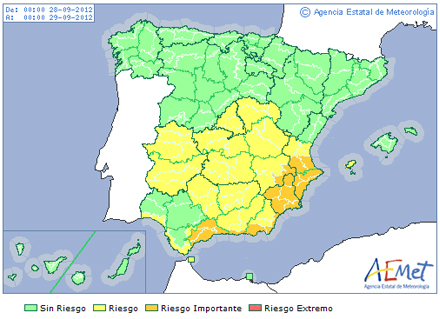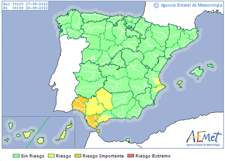 I Cádiz og Huelva kan der falde op til 40 mm. nedbør på en time, og 80 mm. i løbet af de næste 12 timer. I Sevilla og Málaga forventes der op mod 20 mm. i løbet af en time, og samlet 60 mm. i løbet af de næste 12 timer.