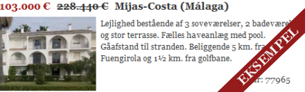 Spanien i Dag hjælper nu dig med at finde de boliger, som ikke findes på det almindelige ejendomsmarked. Der er tale om priser, som de fleste nok vil finde utrolige, men den er go' nok. Står du ikke og skal købe, men kender nogen, der gerne vil, kan du også være med.