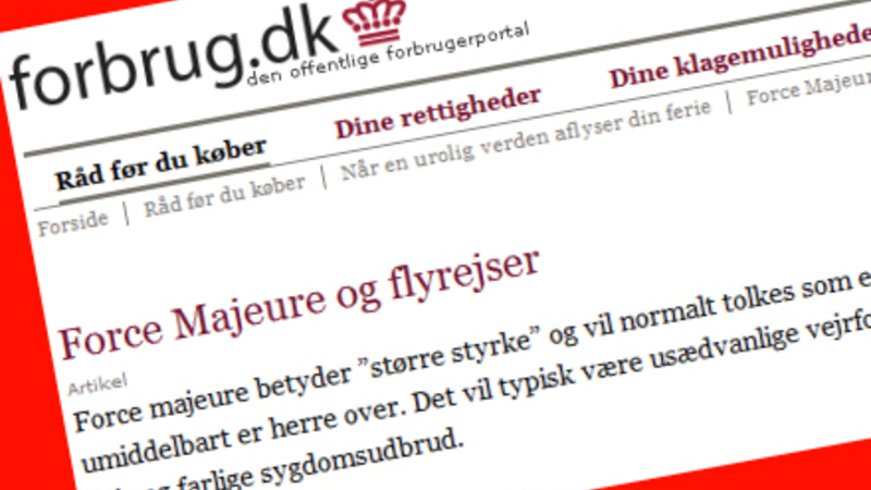 Hvis flyet bliver aflyst, har du krav på – og du vælger selv - ny rejse eller billetprisen retur. Også selvom aflysningen skyldes noget, flyselskabet ikke er herre over som eksempelvis en generalstrejke (force majeure).
