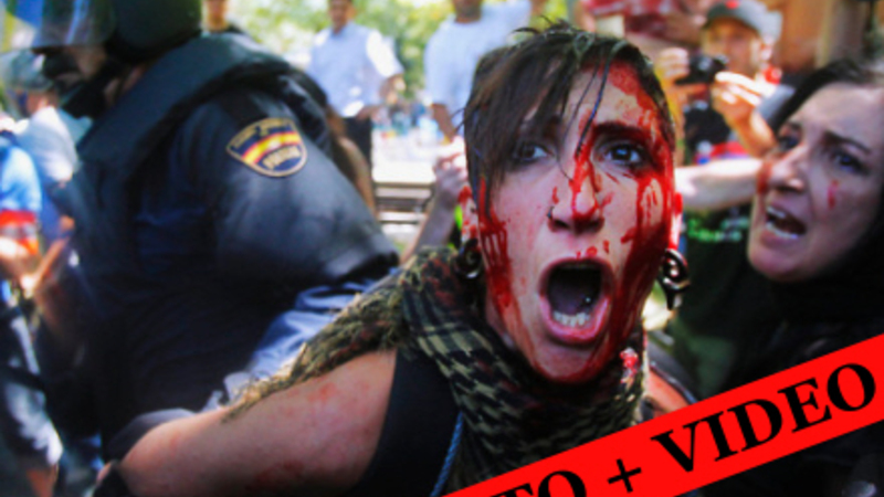 Nogle demonstranter kastede sten mod politiet og ild-skyts mod Indenrigsministeriets bygning i Madrid, hvorefter politiet svarede igen med gummikugler.