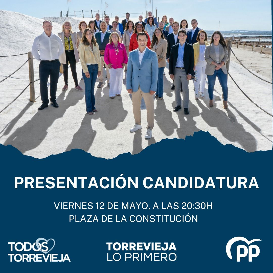 I aften er der præsentation af PP-kandidaterne til kommunalvalget i Torrevieja, Alicante, på Plaza de la Constitución i hjertet af byen klokken 20:30.
