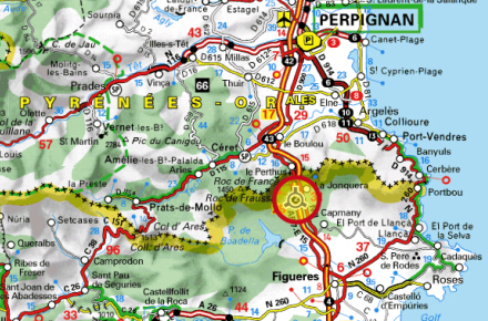 La Jonquera ligger få kilometer syd for den franske grænse. Klik her for at komme til interaktivt kort på ViaMichelin