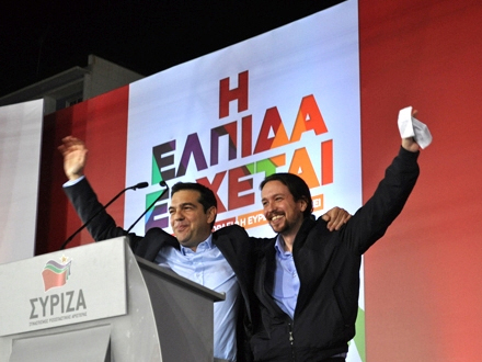 Den karismatiske, politiske leder af Podemos, Pablo Iglesias, har sågar deltaget i den græske valgkamp med det formål at støtte det venstreorienterede Syriza.