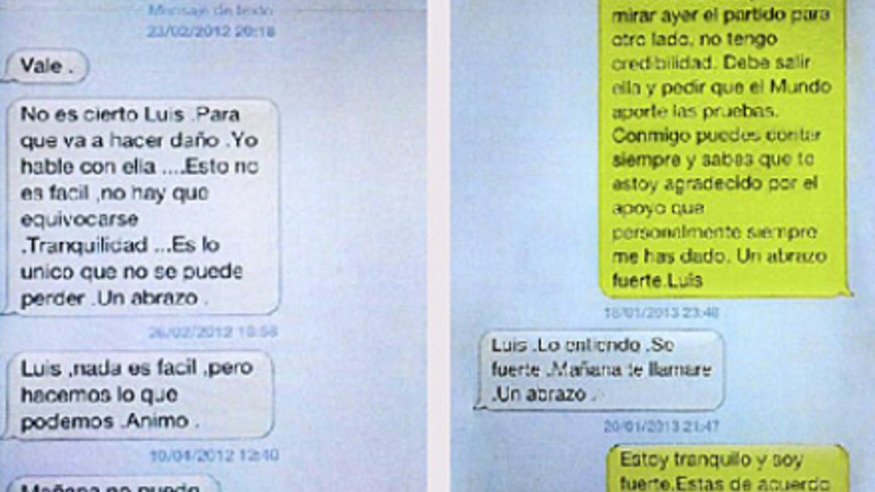 I beskederne fremgår det, at Luis Bárcenas tav om den ulovlige partifinansiering på grund af sin personlige støtte til landets premierminister, Mariano Rajoy, der i en sms fra 2011 skrev: ”Hold ud, Luis, intet er let, men vi gør, hvad vi kan. Op med modet”.