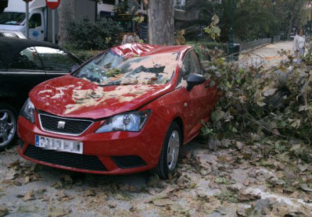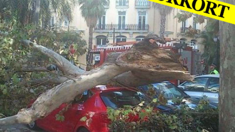 Et stort træ på den centrale Gran Vía Marqués del Turia i Valencia er væltet, og der er sket omfattende skader på biler. Der er heldigvis ingen meldinger om personskader.