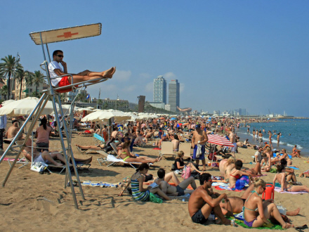 Vi bliver i det nordlige Spanien, men vi skifter Atlanterhavet ud med Middelhavet og tager fra Laxe til Barcelona. Byen behøver ingen beskrivelse, så vi koncentrerer os om stranden Barceloneta. Her finder du fint sand og en strandpromenade med et stort udvalg af restauranter, caféer og natklubber.
