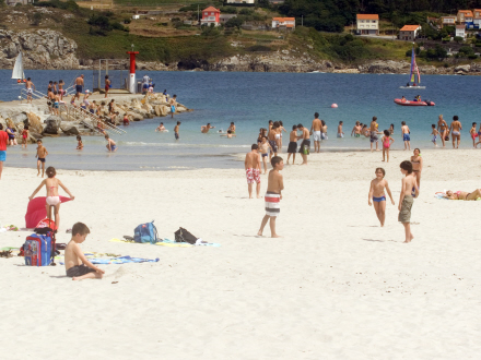 Stranden er 1,3 kilometer lang, hvilket gør den lige så lang som selve Laxe. Og der er rigeligt med plads, for den er i gennemsnit 50 meter bred. Selvom man ikke skulle umiddelbart skulle tro, at en strand kan have roligt badevand, når den ligger ud til Atlanterhavet, så er det faktisk tilfældet her. Cabanas bugt og strandens halvmåneformede design sørger nemlig for, at de voldsomme bølger ikke finder vej dertil.