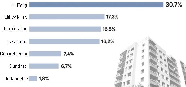 Bolig, politisk klima og indvandring. Se også det seneste politiske barometer