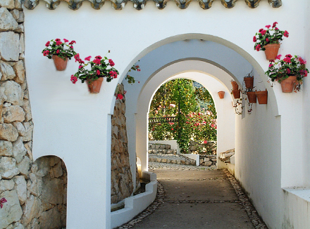 Gæsterne møder karakteristiske elementer fra den mauriske arkitektur, som omhyggeligt er bevaret af andaluserne gennem mange århundreder. Flade tage – 'terraos' - kronet med utallige skorstene, skifer, murværk og hvidkalkede vægge.