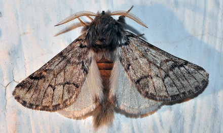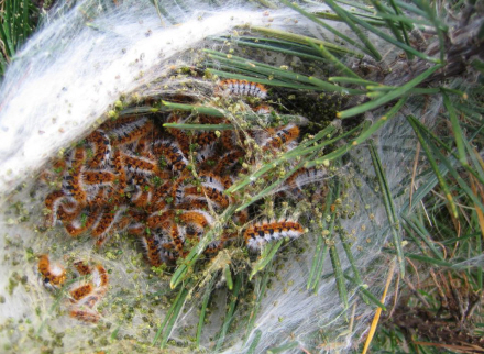 Processions-larver starter livet i træerne, hvor de spinder et stort, hvidt net i grenene.