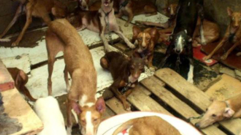 Helvede! Det var, hvad der mødte dyreværnsforeningen Galgos 112 og politiets særlige miljøafdeling Seprona, da de slog til mod en adresse i La Font d'en Carròs i Valencia.