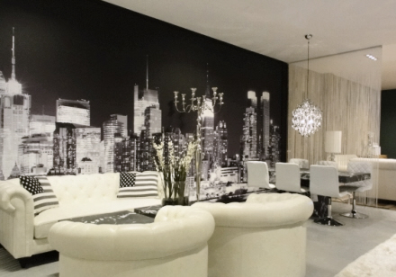 Det elegante New York-miljø med møbler i hvidt læder