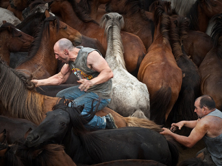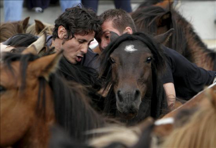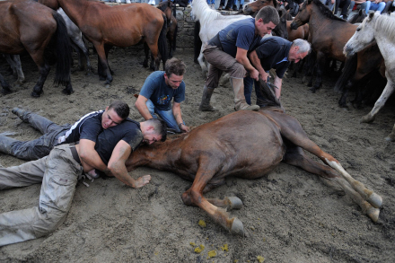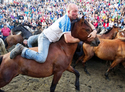 Arrangementet, der varer fire dage, starter med, at landsbyboere går ud i bakkerne for at finde hestene, der holder til i store flokke i Galicien.