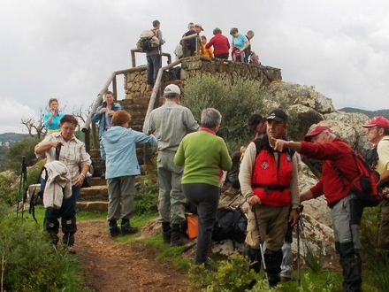 Her skal vi lige ud ad en sti, der går opad og som er brostenbelagt. Vi stiger op en god halv time, indtil vi kommer til en grusvej. Her skal vi til højre, og lige derefter skal vi ind gennem en låge på venstre hånd. Vi kan ane stien som går opad en kort stund, indtil den kommer op til et skilt, hvor der står Sendero til venstre og Ubrique lige ud.