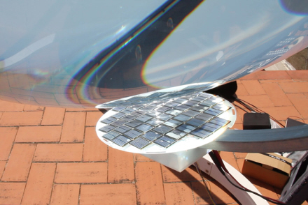Punktet hvor lyset samles er udstyret med solpaneller