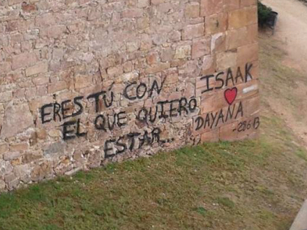 Et ungt kæreste-par, Isaak og Dayana, samt to andre par skal betale en bøde på 2.250 euro for at tegne et hjerte og skrive deres navne på det historiske slot Castillo de Montjuïc i Barcelona.