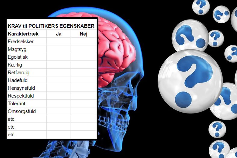 “Stemmesedlerne” blev blev lavet om til, at man krydsede de egenskaber af, som befolkningen ønskede “politikeren” skulle have, for eksempel: